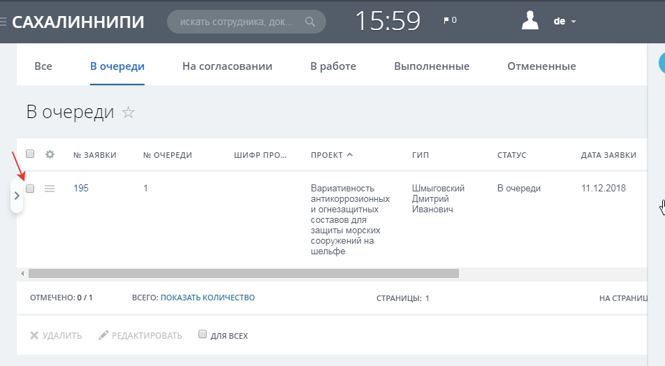 Запрос на результат работ -